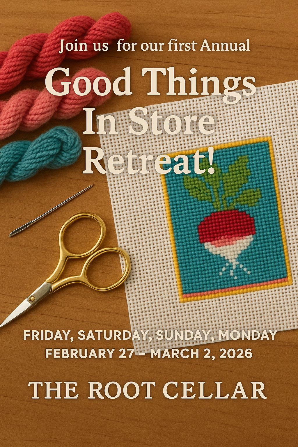 Radish Roots Shop 4601 E. Moody Blvd, Bunnell, FL, United StatesCome join us every Saturday for a free open Stitch at the Shop from 1:00 to 3:00. See you there!
