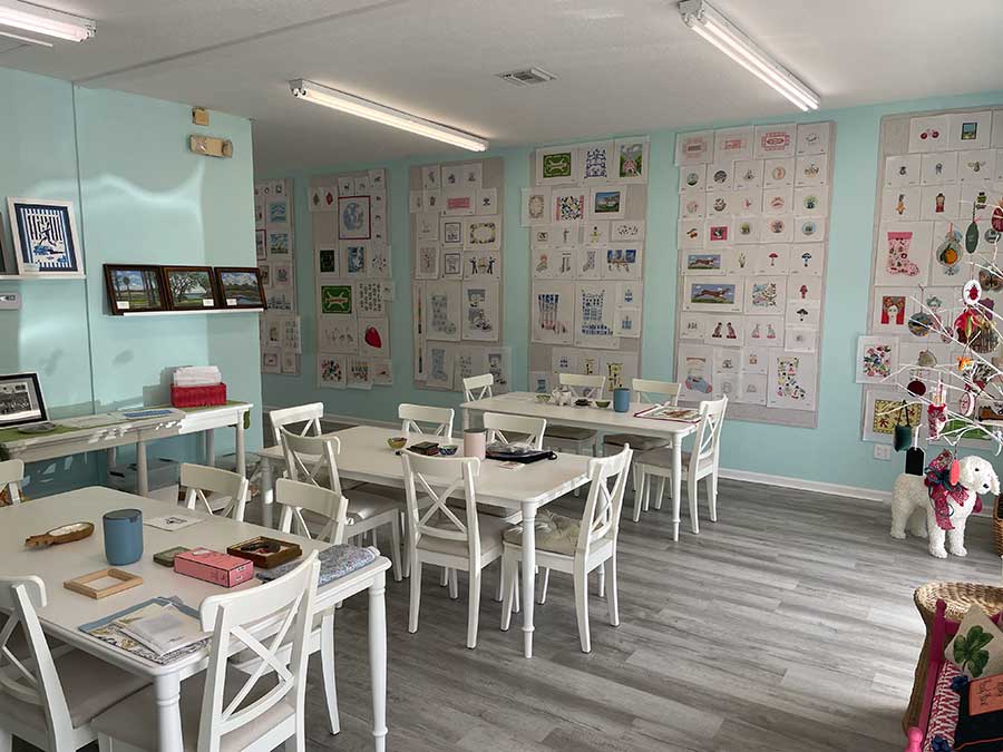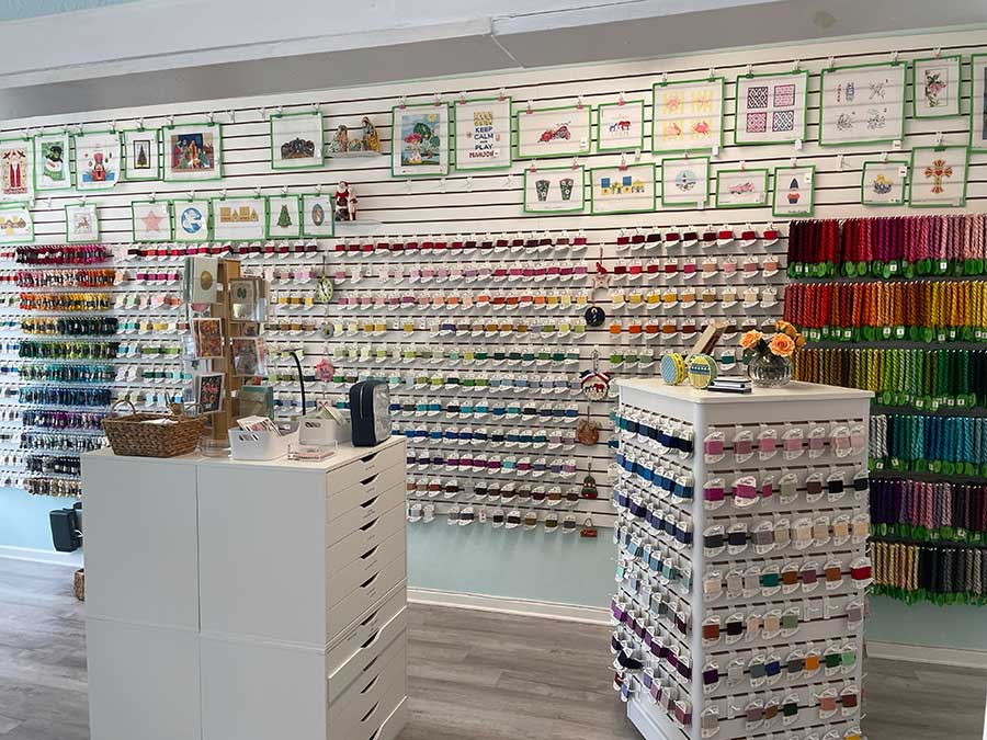 The shop has experienced many incarnations as a cross-stitch and needlepoint store in various locations. Still, it is now just a small, friendly stitching retailer geared towards needlepointers of all levels. We are not fancy!