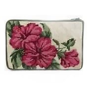 Preassembled needlepoint purse with nylon zipper and fabric back. Design in color on 14 count cotton canvas. 100% cotton floss, instructions and needle. No finishing required. Finished size 7" X 4/34" (18 x 12cm).