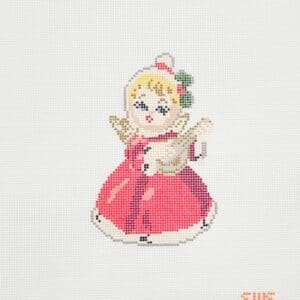 Vintage Ceramic Christmas Angel with mandolin 3 x 4.5″ 18 mesh