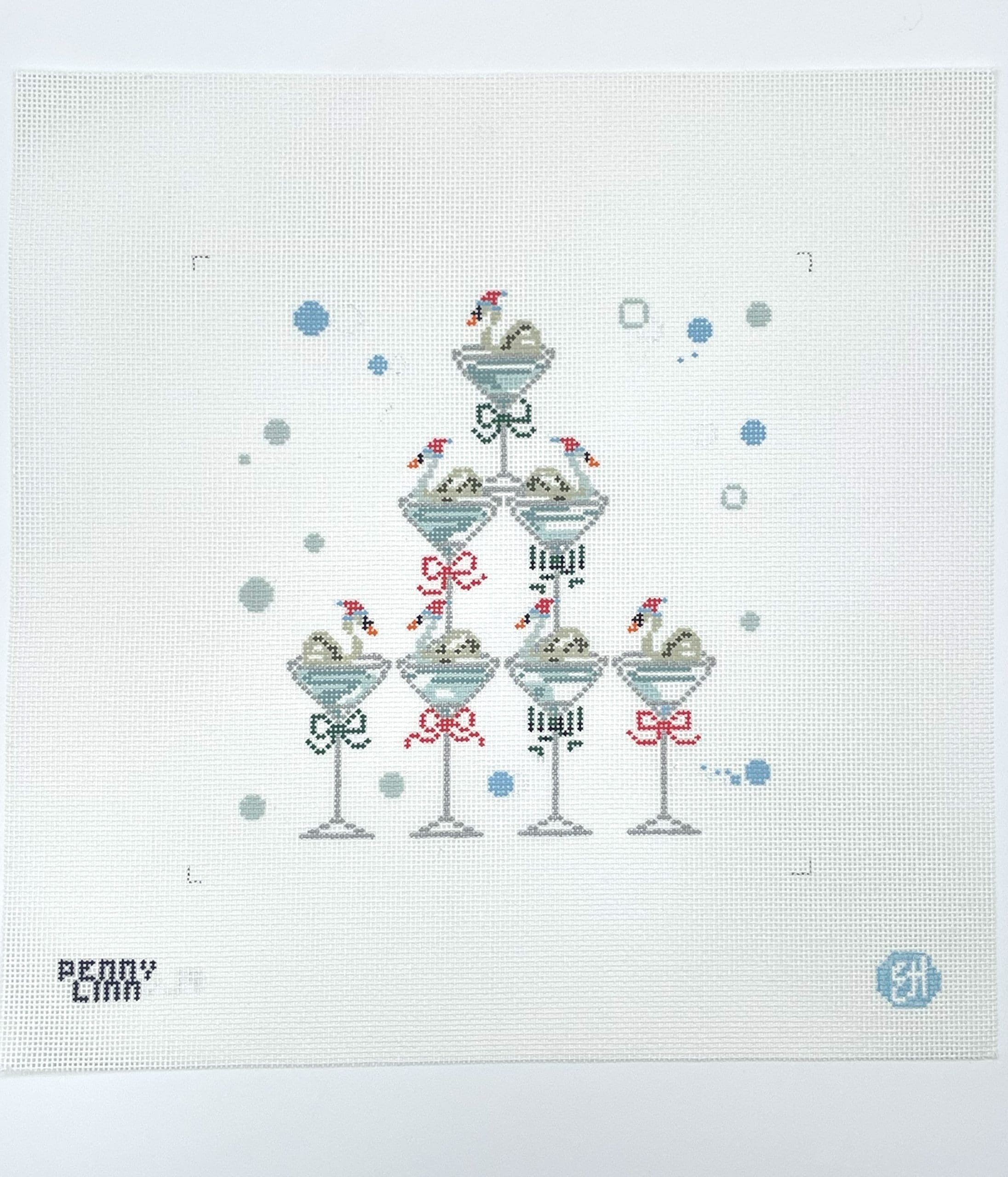 Seven Swans of Swimming with Wording -7″ x 7″ Square- 18 Mesh